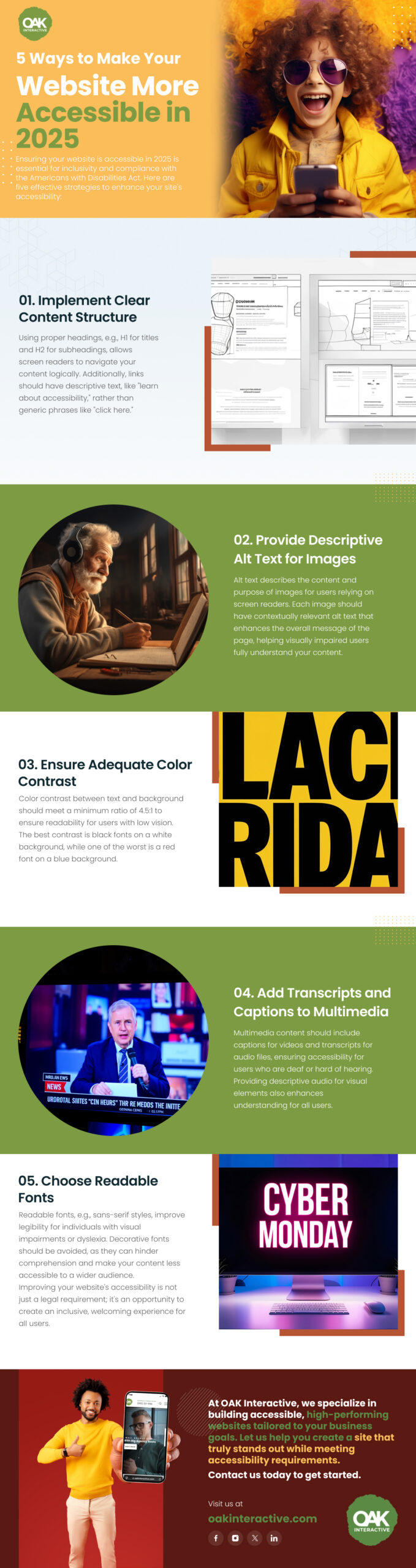 Ensuring your website is accessible in 2025 is essential for inclusivity and compliance with the Americans with Disabilities Act. Here are five effective strategies to enhance your site’s accessibility: