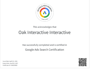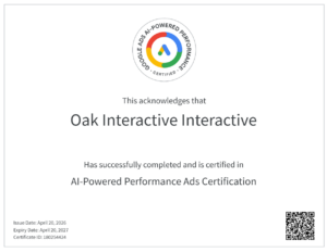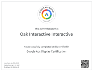 Houston, TX — April 28, 2026 — OAK Interactive, a full-service digital marketing, advertising, and creative agency, today announced it has earned three new industry-recognized certifications from Google: the Google Ads Display Certification, Google Ads Search Certification, and AI-Powered Performance Ads Certification. These certifications reinforce OAK’s commitment to delivering high-performance, data-driven paid media strategies that maximize efficiency, targeting precision, and return on investment for clients.