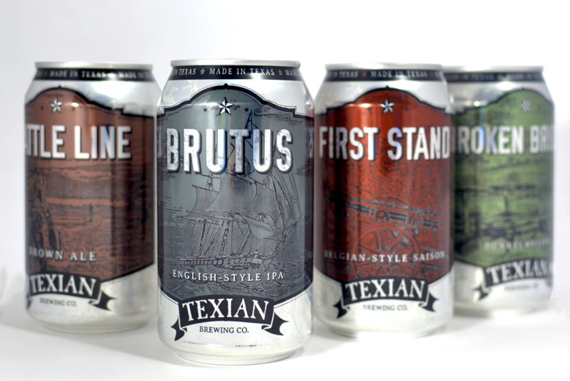 Letting the shine of the aluminum show through was something that the owner of Texian loved when we proposed it. We thought it would make the historical figures and stories look that much more impressive, and it saves money on cans, which is a priority for any start-up. The Texian cans won an American Advertising Federation award for packing in 2015.